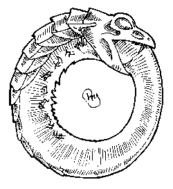 "De térjünk át a nagybetűs történelemre, életünk tanítómesterére! Történt ugyanis, hogy egy nap a földmélyi tárnákban turkáló régészcsoportok egyike nagy port felvető leletre bukkant: egy apró szobrocskára, ami egy groteszk, a saját farkába harapó kígyót ábrázolt. Oldalára egyetlen értelmes faj által sem használt, roppant bizarr rúnákat véstek.